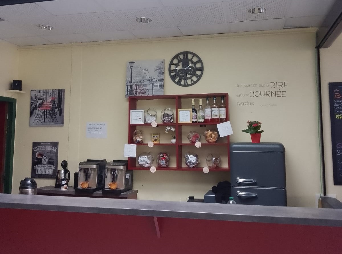 Une petite cafétéria est ouverte, où il est possible d’acheter des biscuits, des céréales, des jus de fruit, du sirop, …